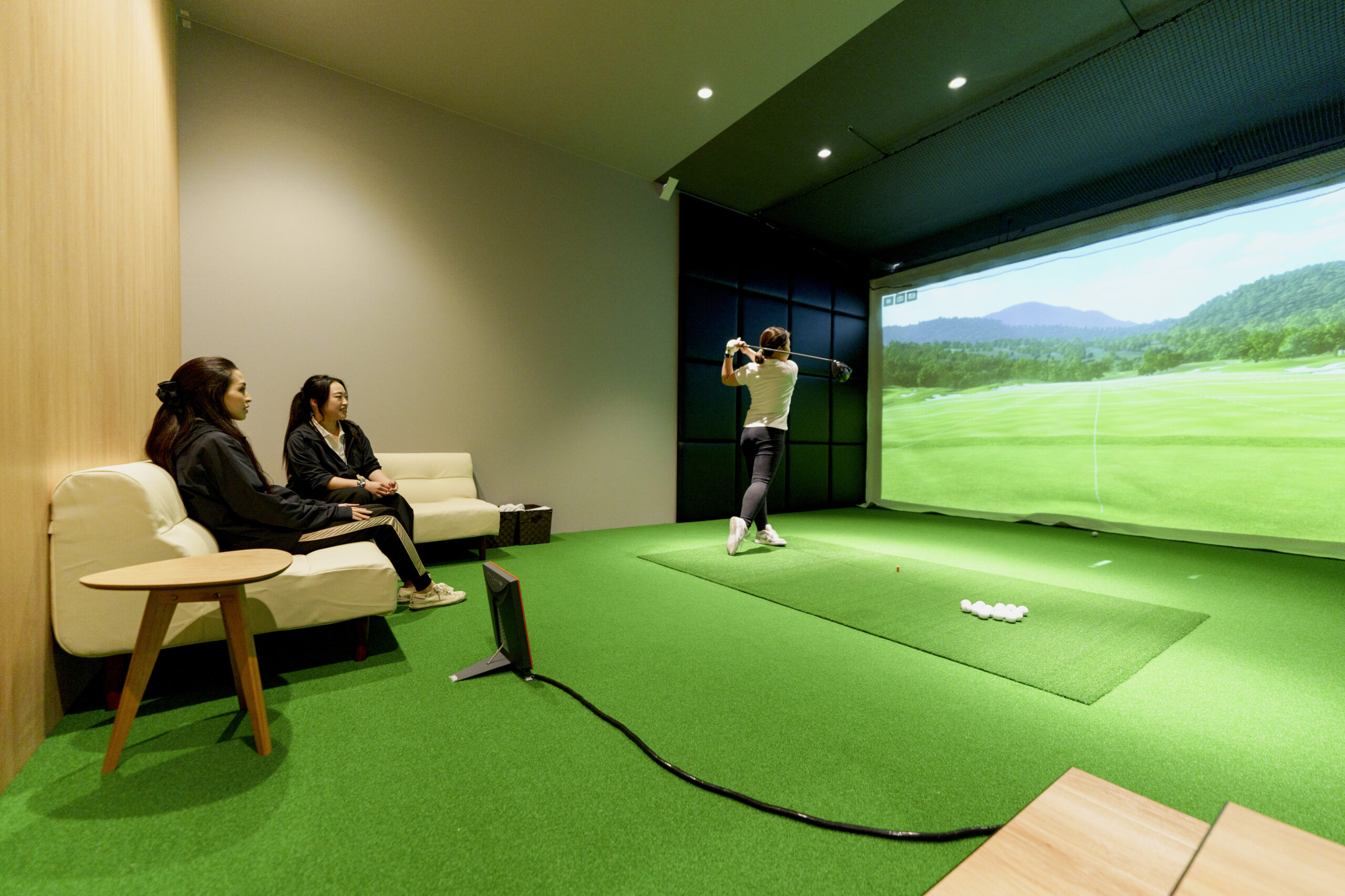 完全個室なので他の人の練習などが気にならず、集中しての練習やバーチャルラウンドを楽しむことができます。